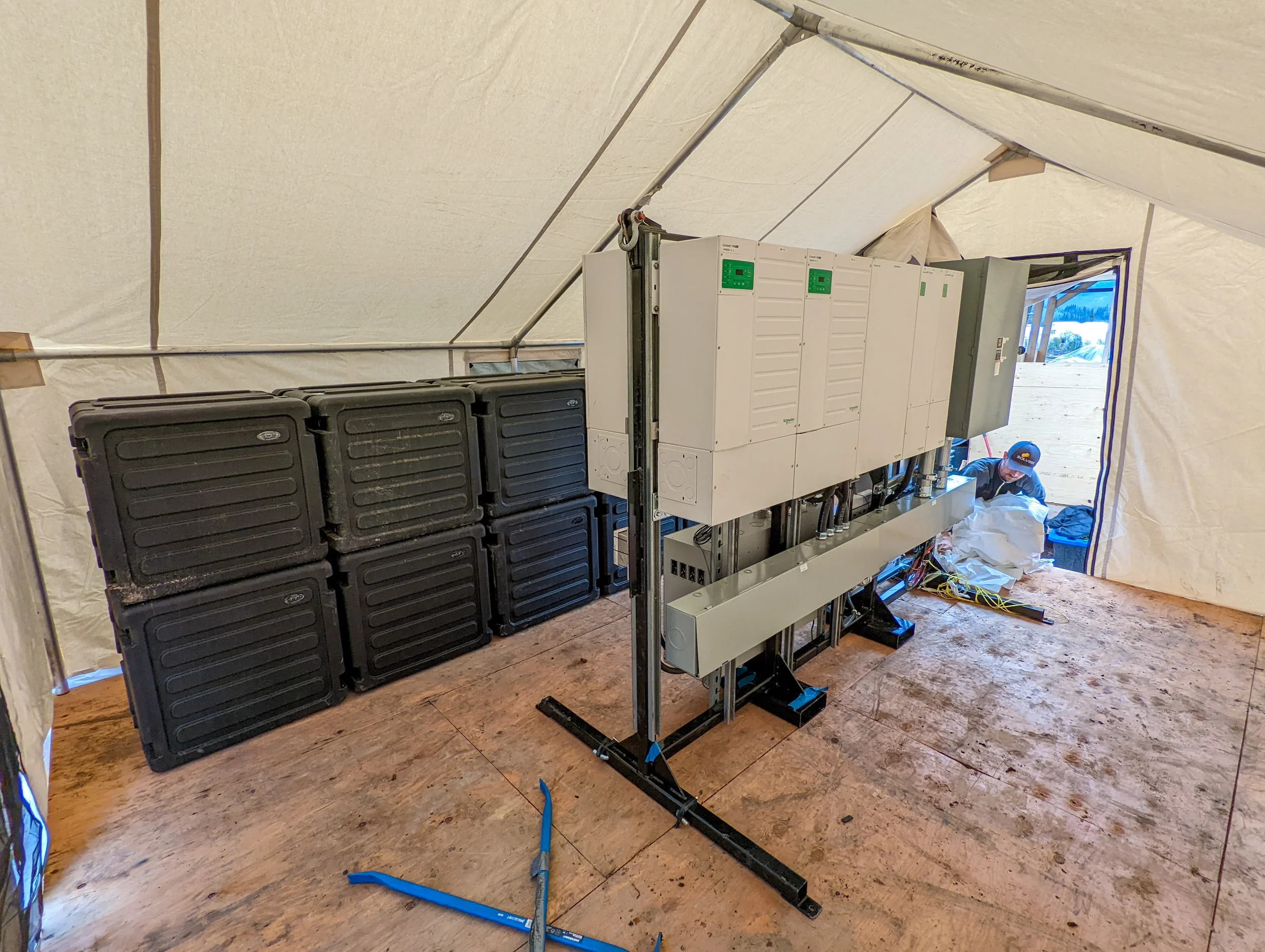 Solvest is pleased to announce the integrated solar and battery energy storage system (BESS) at Snowline Gold’s “Forks” camp, is fully operational. This camp is situated on the Traditional Territory of the First Nation of Na-Cho Nyäk Dun. The 27kW solar array will power the 45-person exploration camp, as well as charge the 121.32kWh battery bank, resulting in up to 12,527 litres of fuel savings per year. The system was a collaborative effort being designed, constructed and maintained by Solvest Inc, is owned by Na-Cho Nyäk Dun Development Corporation (NNDDC), and is being leased to Snowline Gold. This structure provides direct economic impacts to Yukon First Nations and a prolonged partnership that strengthens renewable energy deployment in northern mines.